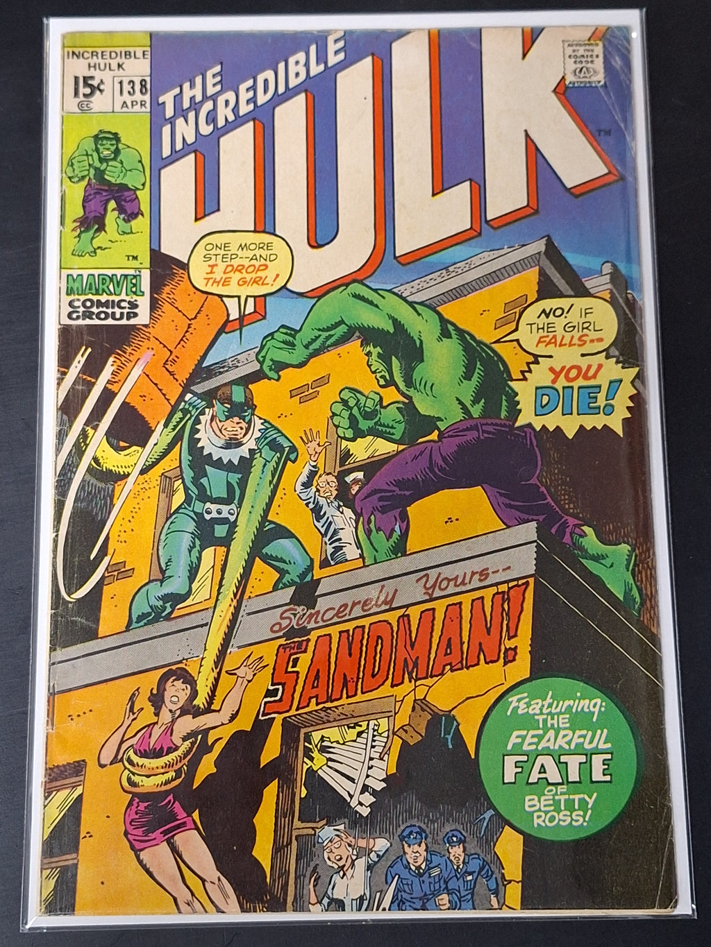 Hulk 138 Marvel 1971 Bronze Age Classic Hulk vs Sandman