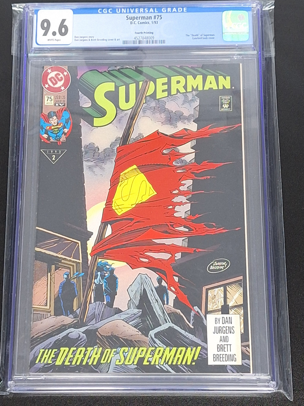 Superman 75 DC 1993 The Death Of Superman HTF 4th Printing Variant CGC 9.6